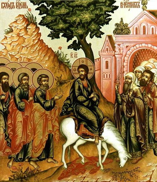 На другий день Господь послав своїх учнів, щоб вони привели ослицю й осля. І Той, Кому престолом служить небо, сівши на осля, увійшов до Єрусалиму. І одні стелили Йому свій одяг (по дорозі), а інші зрізали гілки з фінікових дерев (і стелили по дорозі). Діти ж єврейські, які і передували Христові, і супроводжували Його, тримаючи гілки в руках, кричали: Осанна Синові Давида! Благословен той, хто йде в ім’я Господнє, Цар Ізраїлів! (пор. Мр 11,8-9; Мт 21,9; Йо 12,13). Так було тому, що Дух Святий ворушив їхніми устами для прославляння і вихваляння Христа. Вайями, тобто гілками, вони знаменували перемогу Христа над смертю, так як «вайєю» у євреїв називається гілка, що розпускається (оживаюча). Був же звичай – надавати почесті переможцям у боротьбі або в яких-небудь війнах, супроводжуючи їх в урочистій процесії з гілками вічнозелених дерев. А молодий (необ’їжджений) осел, на якого возсів Христос, таємниче означав нас, язичницькі народи, бо підкоривши їх (своїй владі), Він став іменуватися Побідоносцем і Переможцем, Царем усього світу.